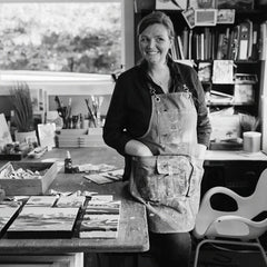 Michelle is a biologist-turned-artist living on Vancouver Island. Her paintings are endlessly inspired by her home on the coast, surrounded by ancient cedars and the cold Pacific Ocean. A lover of details, her goal in painting is to break down these complex Canadian landscapes into their component parts, mostly in hopes of soothing her busy brain. She lives and paints in Victoria BC with her husband, two teenage boys and two dogs (you guessed it, also boys).